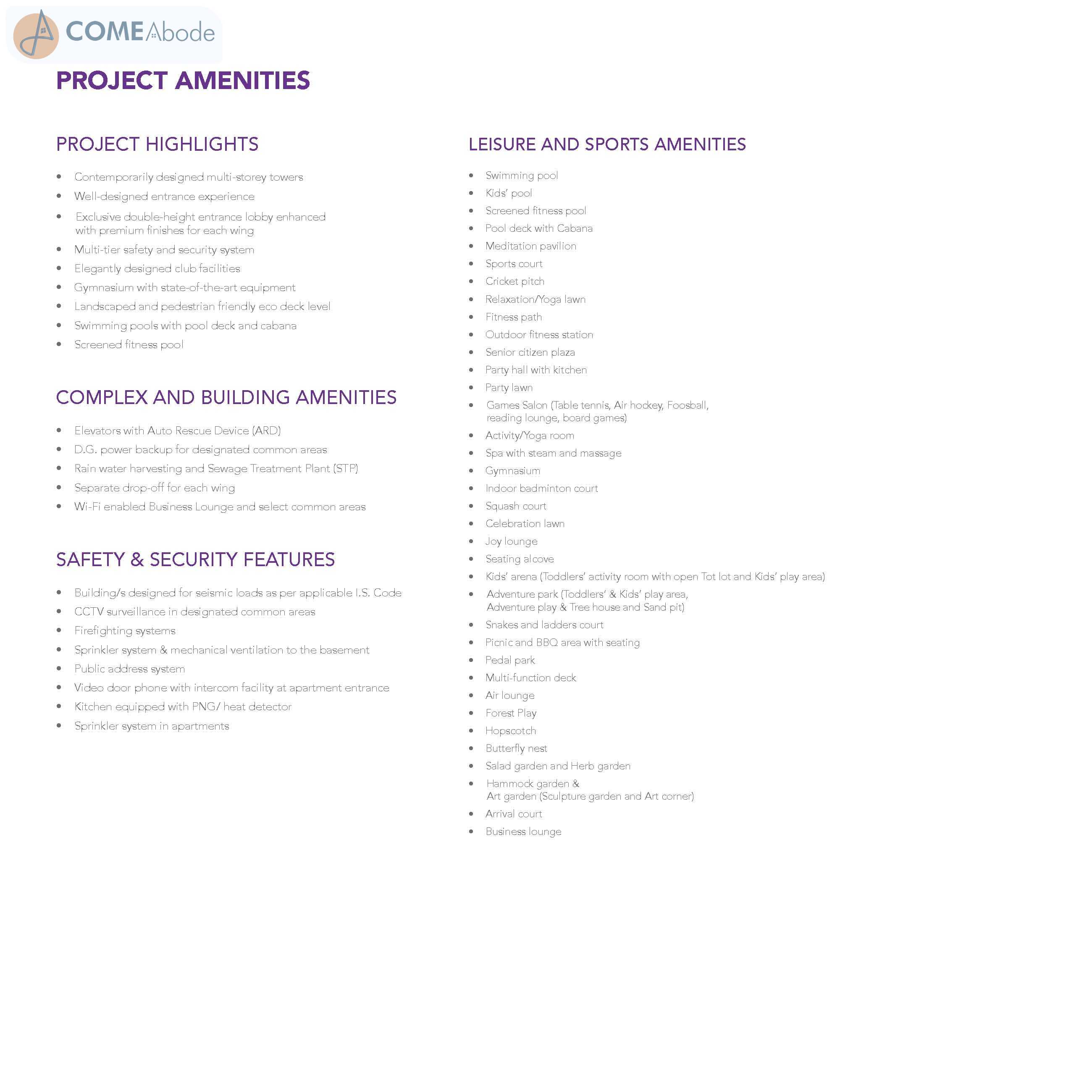 - Some of the amenities are rainwater harvesting